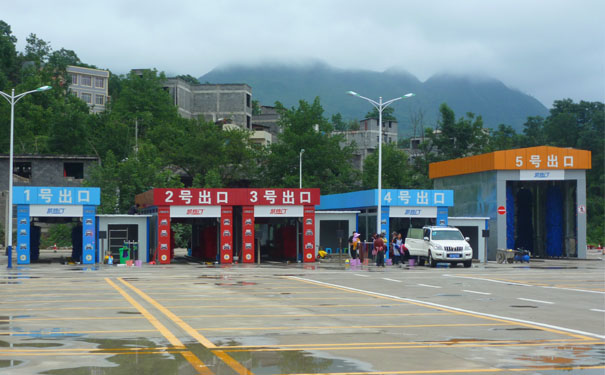 鎮雄洗車場(chǎng),安裝凱旋門5台洗車設備(bèi),每小時洗車近300台